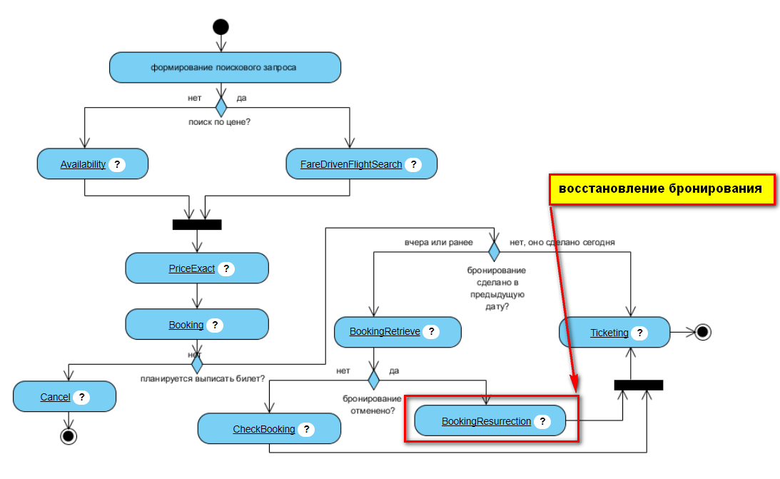 Сервис Booking Resurrection (Восстановление бронирования) — после BookingRetrieve, в случае, если бронирование было аннулировано по истечению таймлимит или же аннуляция произошла по инициативе перевозчика – предпринимает попытку пересоздать бронирование по данным ранее забронированного варианта.