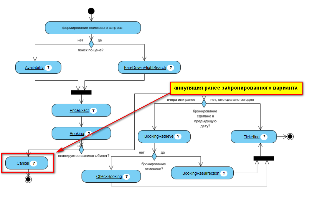 Сервис Cancel (Отмена) – аннуляция ранее забронированного варианта (не является возвратом). Снимает ранее забронированные места.